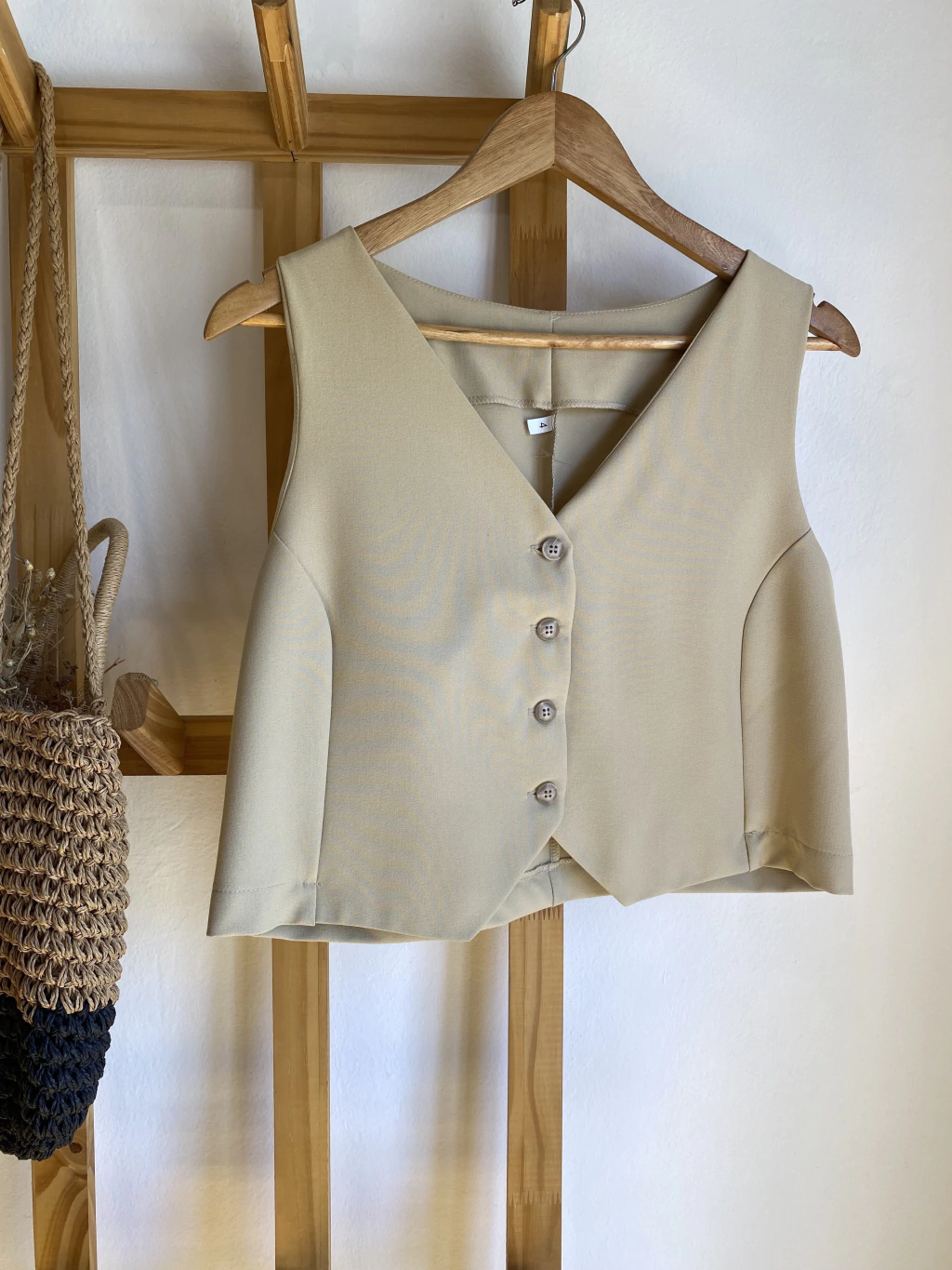 Chaleco sastrero de crep Rigido, con 4 botones y recortes. No es forrado.