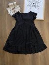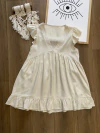 Vestido de Lino con pequeña manga volados escote V. Recortes y volados. Talle único Abarca un M