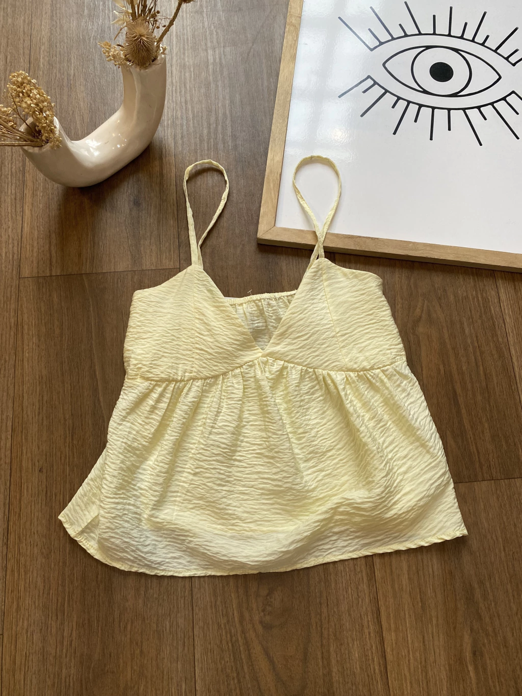 Blusa bretel con recorte y frunce elastico en la espalda.
