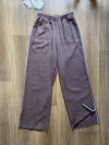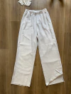 Pantalón palazo de Lino con vivos blancos laterales. Elastico en cintura y bolsillos. Tajo en bota manga.